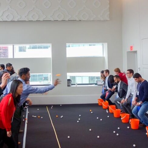 Desafios sequenciais. Um moderador faz a gestão de toda a ação. Num LCD de grandes dimensões, cada jogo é anunciado e descrito. A solo? Uma equipa de cada vez? Todas as equipas em simultâneo? Mano a Mano? Mais do que um jogo em simultâneo? As equipas estabelecem estratégia em tempo real, escolhem os elementos que consideram indicados e apostam! Fun, fun, fun.