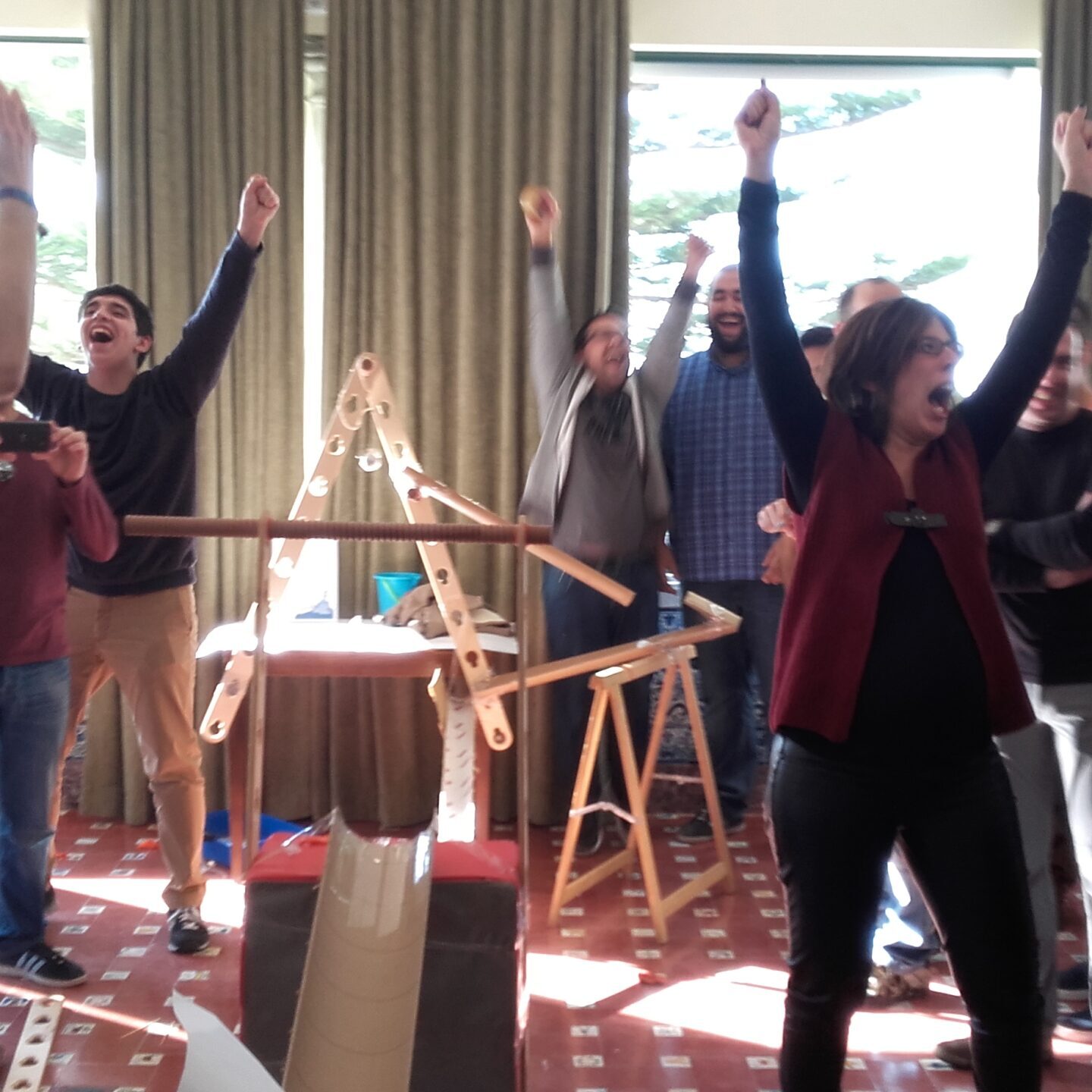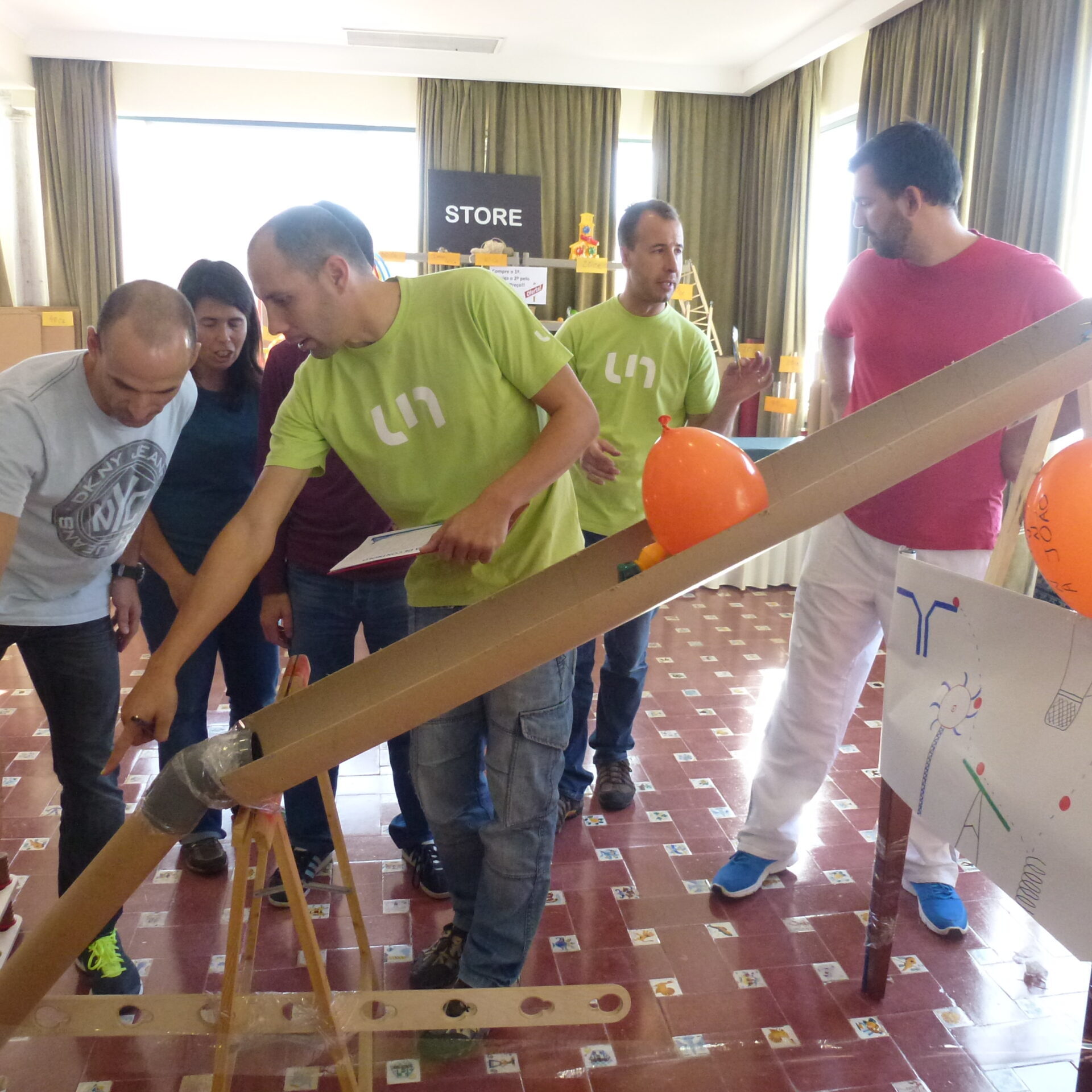 Ação reação. Cada tomada de decisão gera consequência e quando uma equipa está linkada entre si todo o processo sofre impacto. Em Goldberg cada equipa constrói a sua máquina mas apenas o sucesso de todos ativa a Grande Energia!